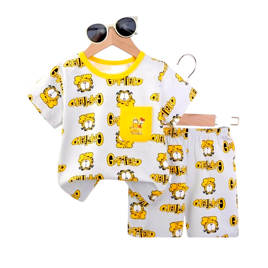 Kids Co-ord set Cartoon Printed Round Neck, Garfield Yellow, Toddler, Age 1 -6 year