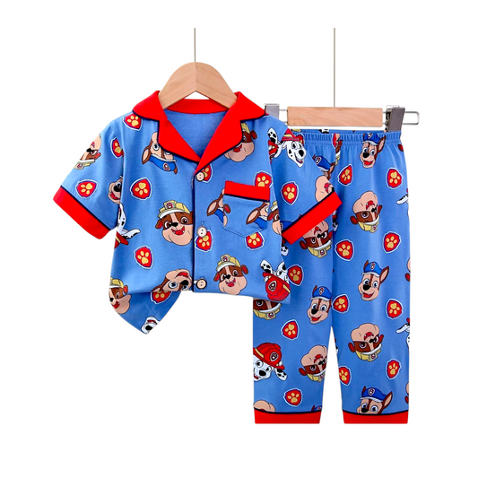 Kids Night Suit Wear set Cartoon Printed Collar Neck, PAW Patrol Blue, Toddler, Age 2 - 10 year