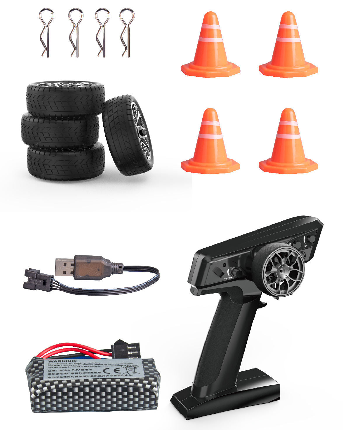 Comes with 4 drift tyres & accessories for tire swapping.