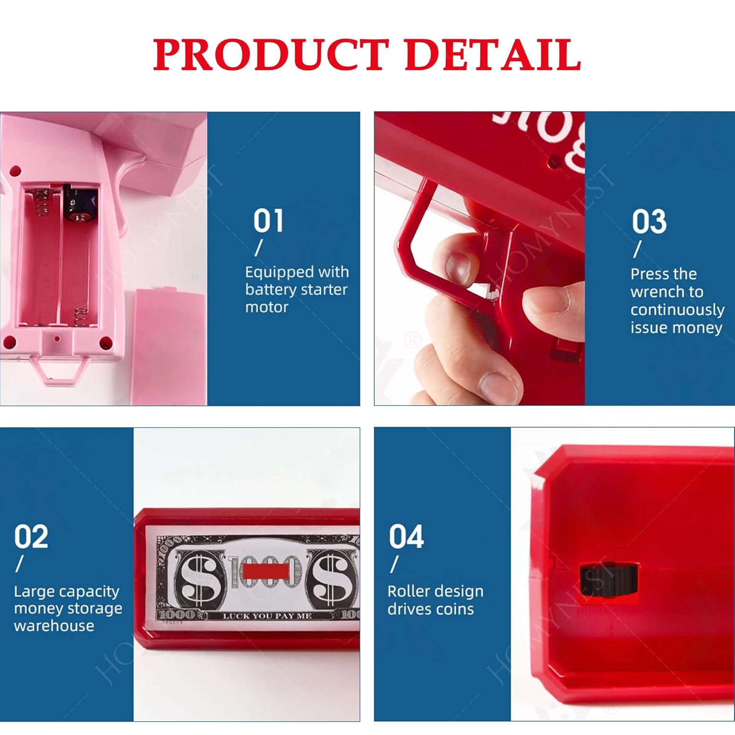 Hold the trigger and watch the bills spray out!